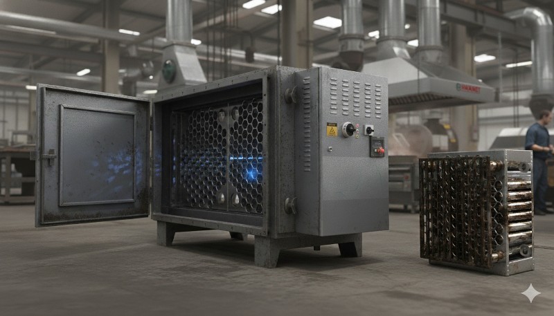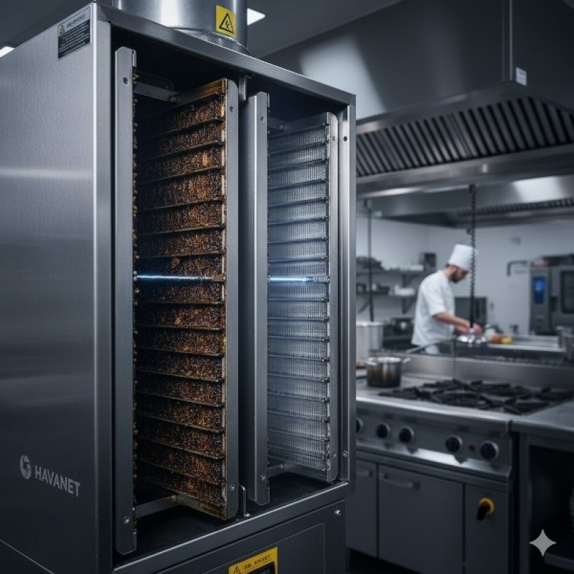 Elektrostatik Filtreler, özellikle endüstriyel mutfaklarda, kebap ocaklarında ve yağ buharının yoğun olduğu tesislerde duman ve yağ partiküllerini elektrostatik yükleme prensibiyle toplar. Partikülleri iyonize edip toplama plakalarına yapıştırarak havadan %99'A VARAN VERİMLE ayırır. HAVANET olarak kurduğumuz sistemler, kanal tıkanmalarını önler, yangın riskini azaltır ve çevreye yayılan dumanı minimuma indirir. Periyodik temizlik ve bakım hizmetlerimizle cihazınızın verimini maksimumda tutuyoruz.